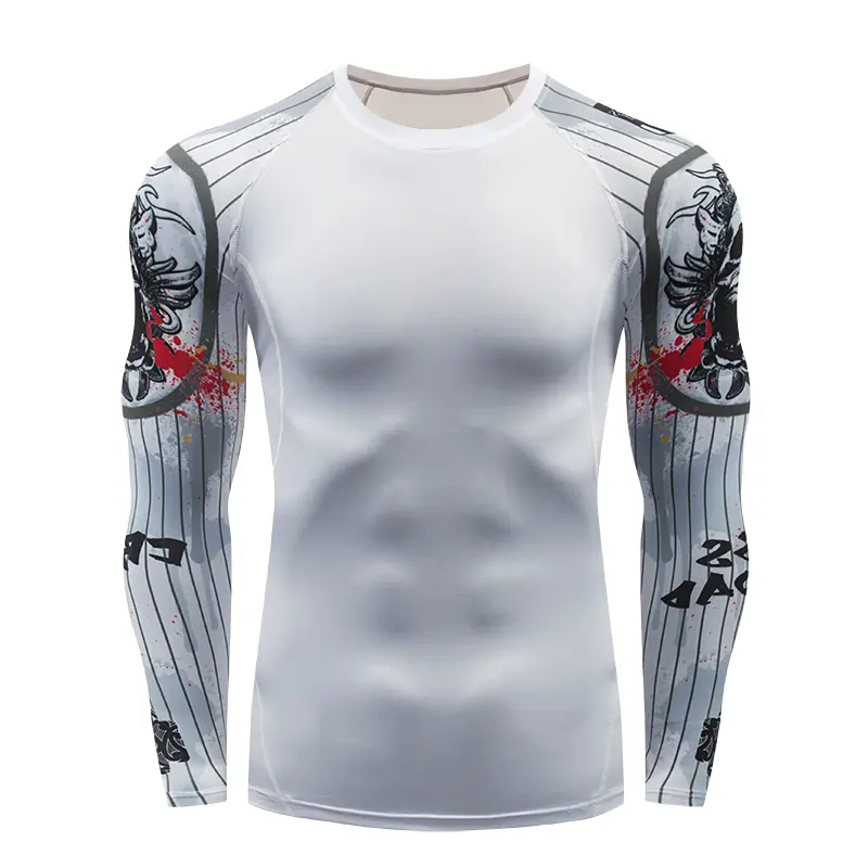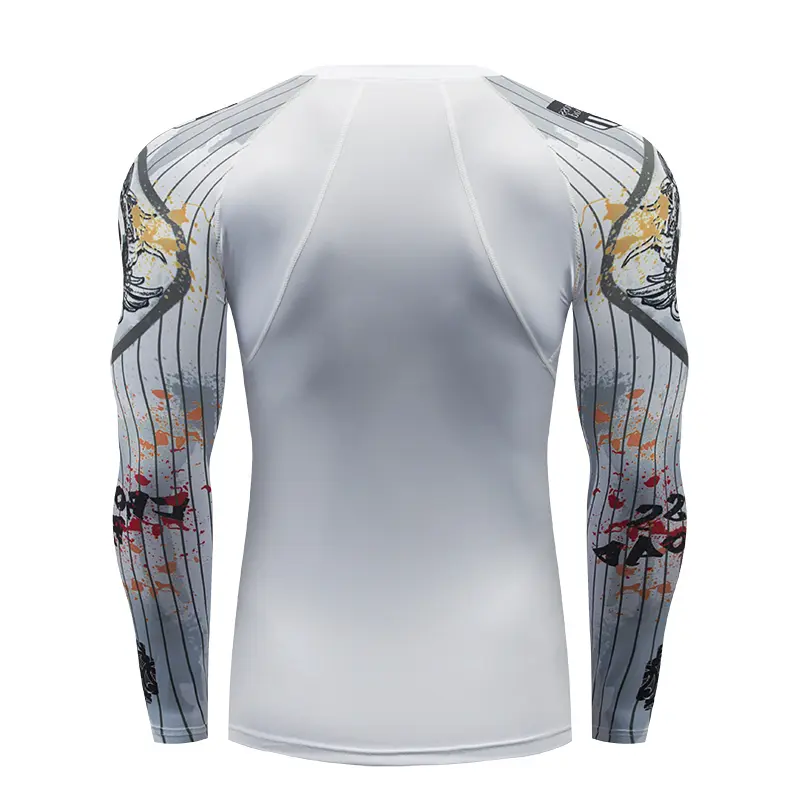 Білого кольору із зображенням черепу та принтом червоного, сірого та чорного кольорів на рукавах. Рашгард чоловічий CrossRoad White шиється із швидковисихаючої облягаючої тканини. Підходить для силових видів спорту, а також для фітнесу, бігу, велоспорту та інших. Також відмінно підійде для захисту від сонця та вітру на риболовлі або під час купання в морі.