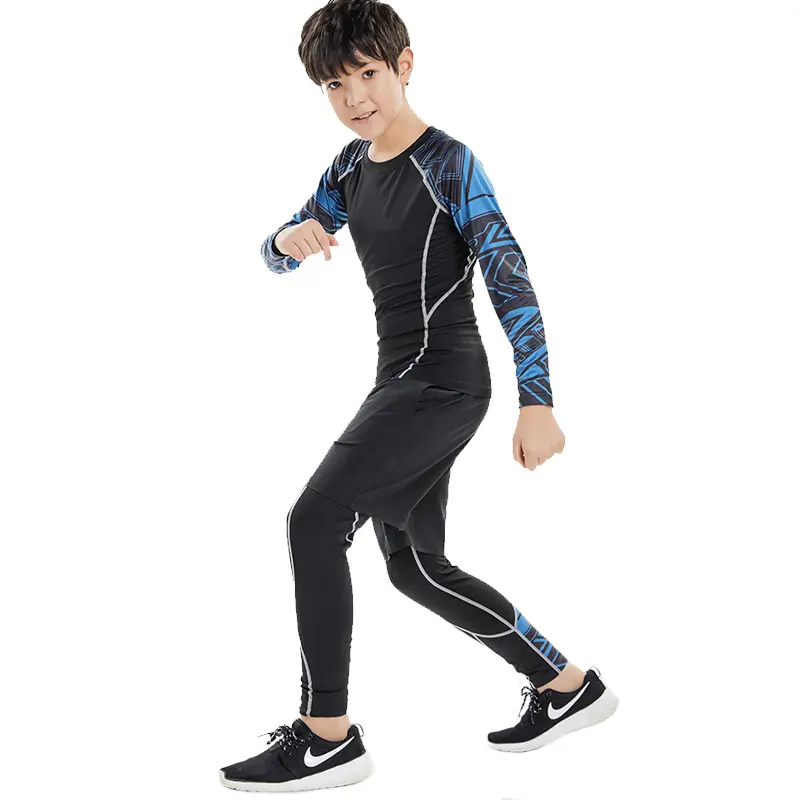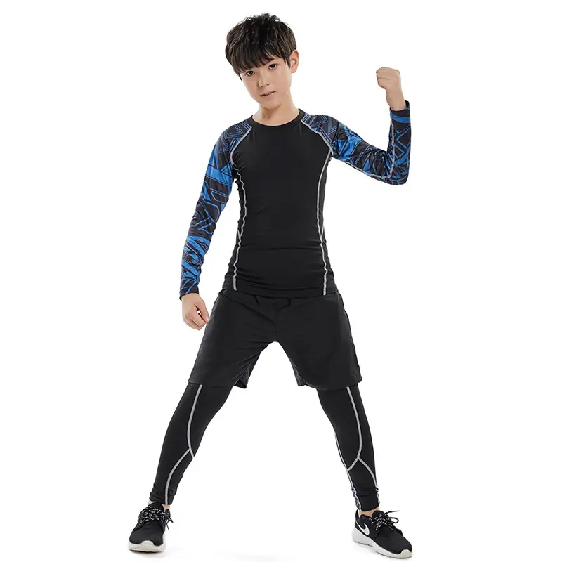 для занять фізкультурою та активними видами спорту. Чорного кольору з геометричним принтом синього кольору на рукавах та стегнах. Костюм спортивний дитячий Deep Power шиється зі швидковисихаючої тканини з легким компресійним ефектом. Підходить для будь-яких активних видів спорту: фітнесу, бігу, єдиноборств та інших. У комплект входять шорти, штани та рашгард.