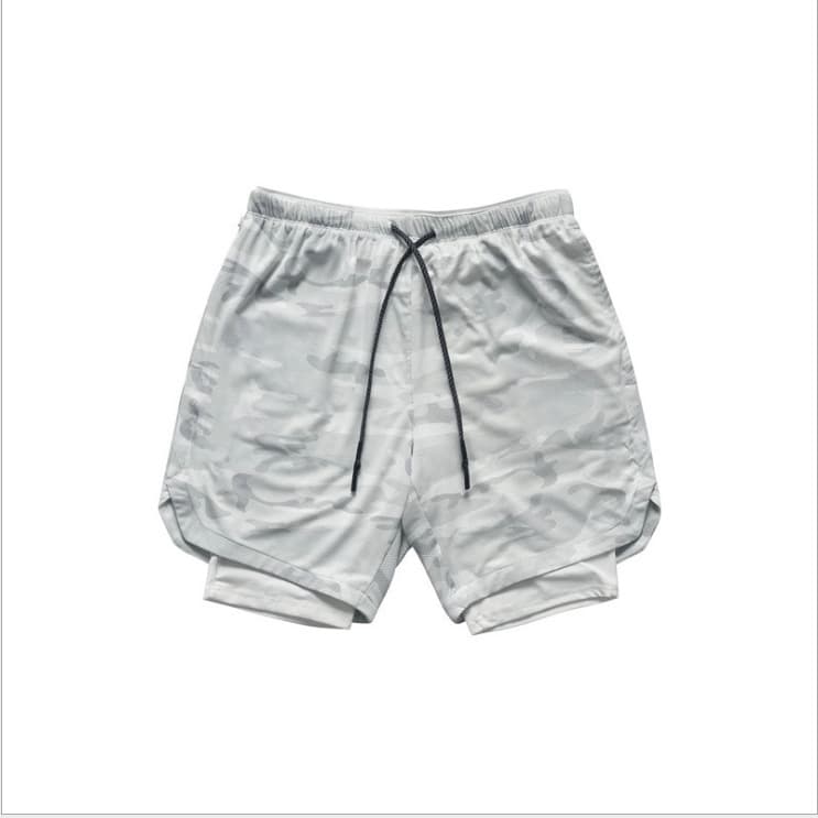 Шорти спортивні MuscleMan камуфляж сірий підходять для силових видів спорту, а також фітнесу, бігу та інших. Складаються шорти з двох частин: зовнішньої – камуфляж світло-сірих відтінків, із тканини з мікроперфорацією, і внутрішньої – білого кольору, з облягаючої швидковисихаючої тканини. Підтримуються шорти широкою гумкою зі шнурком. На зовнішній частині шорт розташовуються дві бічні кишені та задня кишеня на блискавці. На внутрішній частині розташовується невидима, дуже зручна кишеня для смартфона.