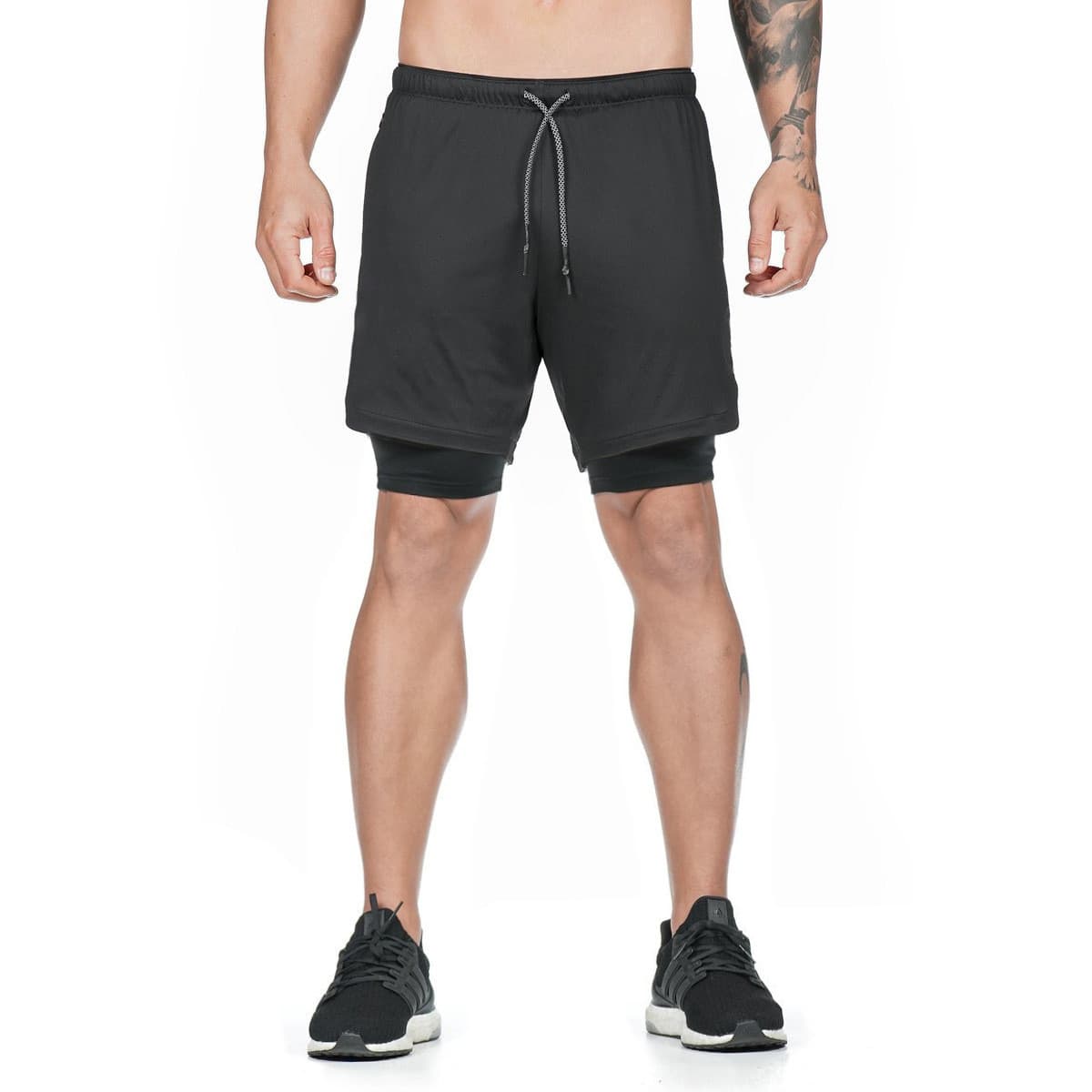Шорти спортивні MuscleMan підходять для силових видів спорту, а також фітнесу, бігу та інших. Складаються шорти з двох частин: зовнішньої – чорного кольору, з тканини з мікроперфорацією, і внутрішньої – також чорного кольору, з облягаючої швидковисихаючої тканини. Підтримуються шорти широкою гумкою зі шнурком. На зовнішній частині шорт розташовуються дві бічні кишені та задня кишеня на блискавці. На внутрішній частині розташовується невидима, дуже зручна кишеня для смартфона.