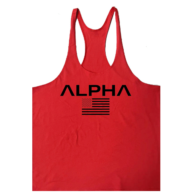 Майка чоловіча спортивна червона ALPHA з чорним логотипом поєднує стиль і комфорт, ідеально підходить для тренувань та активного способу життя. Виготовлена з натуральної бавовни із додаванням спандексу, вона забезпечує свободу рухів та приємні відчуття на шкірі.