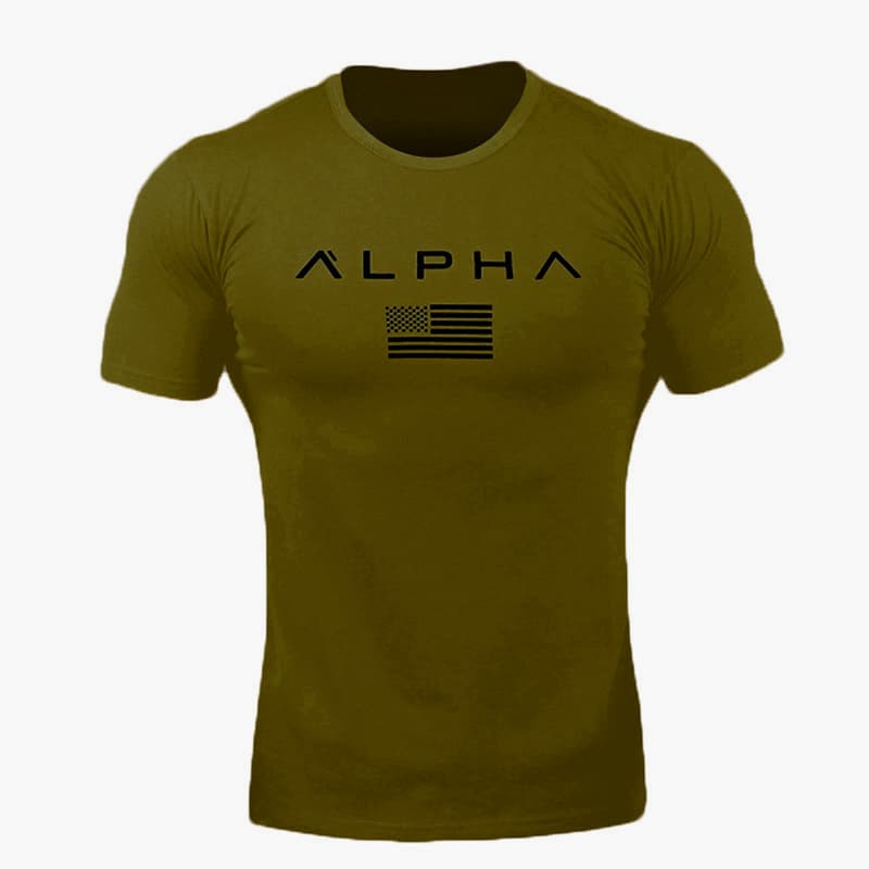 Підходить для тренувань та повсякденного використання. Футболка ALPHA хакі шиється із якісної тканини, яка складається із бавовни та спандексу. На грудях розташовується логотип ALPHA чорного кольору. Футболка не деформується навіть при частому пранні, але прати футболку необхідно за температури не вище 30 градусів.