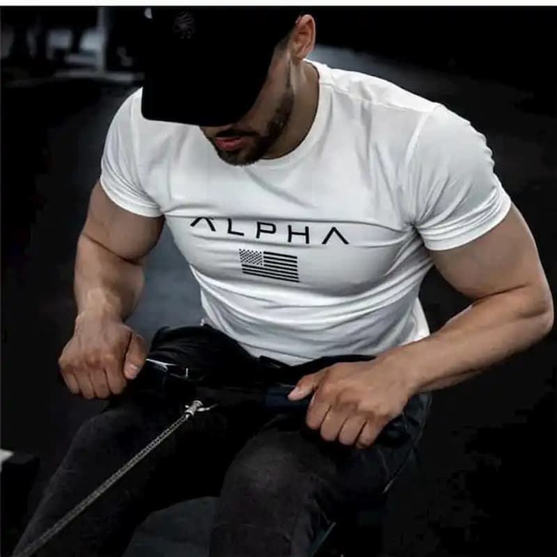 Підходить для тренувань та повсякденного використання. Футболка ALPHA біла шиється із якісної тканини, яка складається із бавовни та спандексу. На грудях розташовується логотип ALPHA чорного кольору. Футболка не деформується навіть при частому пранні, але прати футболку необхідно за температури не вище 30 градусів.