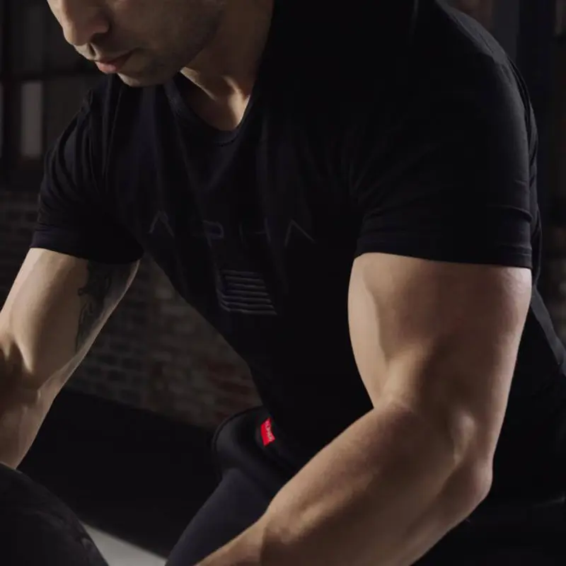 Підходить для тренувань та повсякденного використання. Футболка ALPHA чорна шиється із якісної тканини, яка складається із бавовни та спандексу. На грудях розташовується логотип ALPHA також чорного кольору. Футболка не деформується навіть при частому пранні, але прати футболку необхідно за температури не вище 30 градусів.