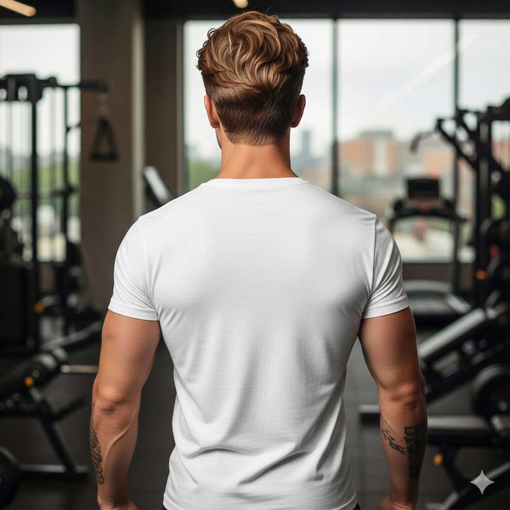 Футболка чоловіча білого кольору, приталений крій (Slim Fit), відзначається високою якістю та комфортом завдяки поєднанню натуральної бавовни та спандексу.